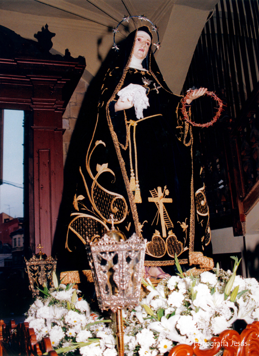 gesto delicado. Hay en ella como un andar callado en el sufrimiento. Viste con hábito negro en el